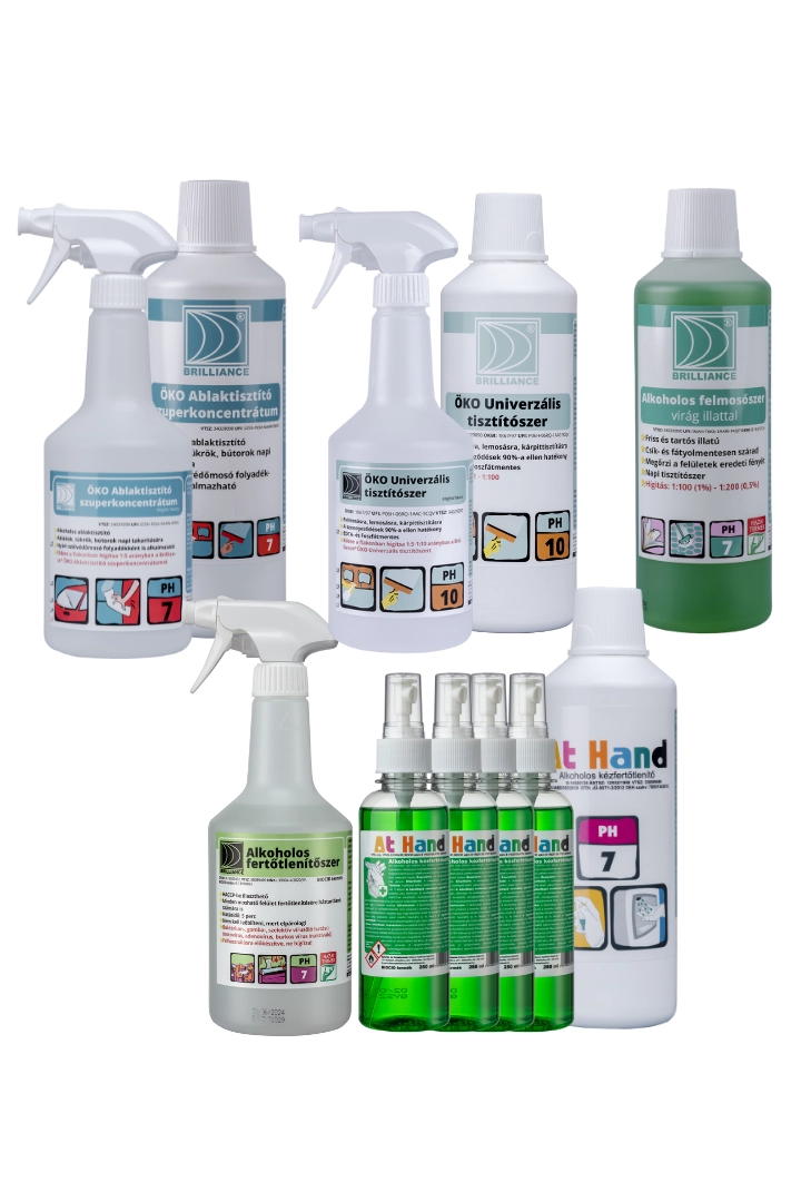 • Megfelelő kézfertőtlenítés – Brilliance® At Hand alkoholos kézfertőtlenítő 4 db 0,25 liter + 1 db 1 liter utántöltő