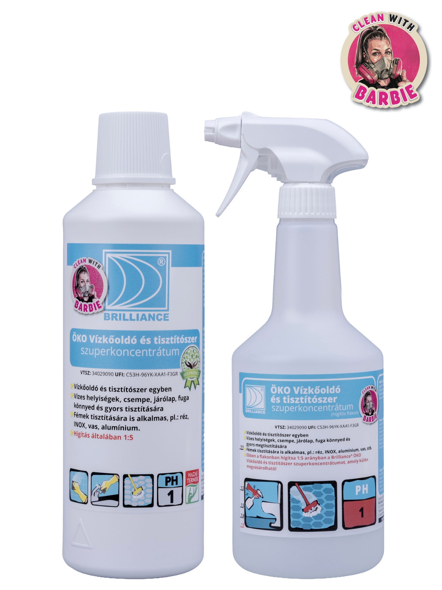 Limitált kiadású ÖKO Vízkőoldó és tisztítószer szuperkoncentrátum hígítós flakonnal Clean with Barbie ajánlásával!